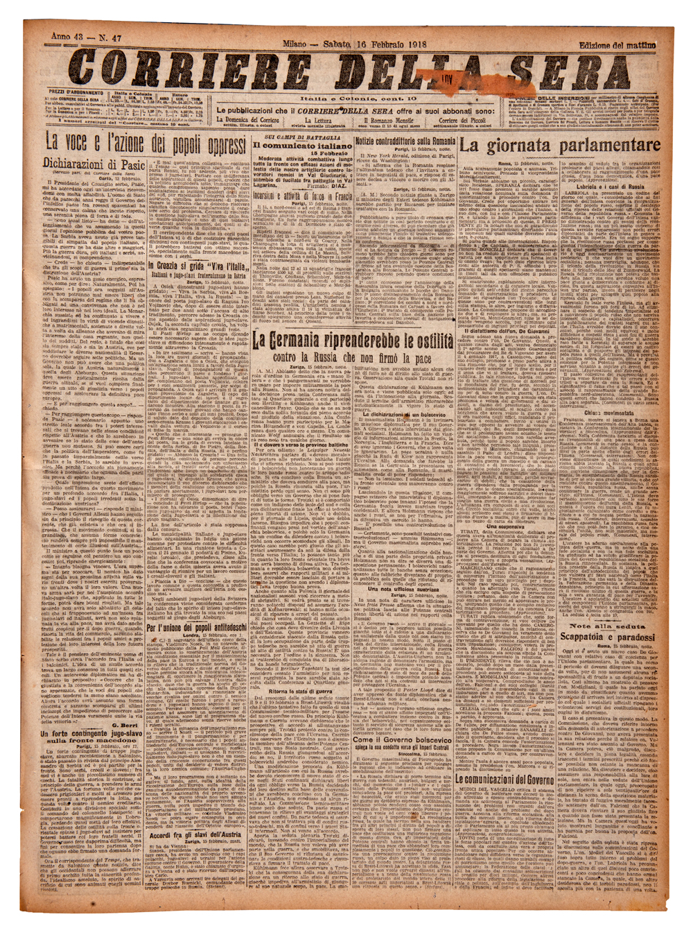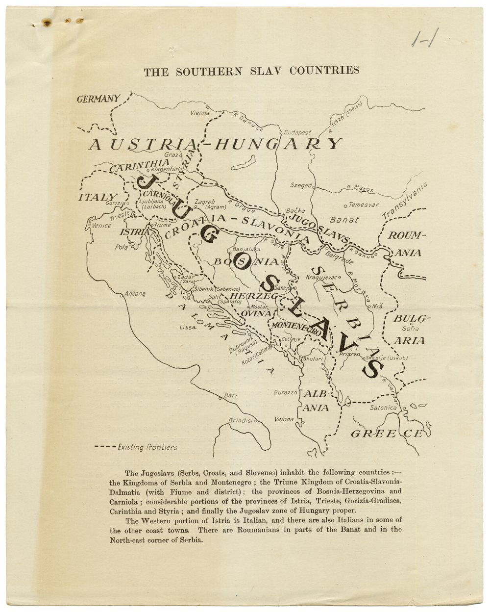 Caso assolutamente particolare fu quello della propaganda indirizzata ai serbi ed agli altri popoli slavi (alcuni di essi al termine del conflitto si sarebbero uniti ai serbi per far nascere il nuovo Stato jugoslavo). Roma e Belgrado, pur essendo alleate, avevano piani concorrenziali, ciascuna volendo affermare la propria influenza politica ed economica nella Penisola Balcanica e garantirsi la sicurezza strategica acquisendo il controllo del mare Adriatico. In Italia gli orientamenti riguardo al modo con cui gestire questo delicato settore della propaganda non erano uniformi, confrontandosi gruppi favorevoli al compromesso ed alla collaborazione con gli slavi ed altri che invece ragionavano in un'ottica di opposizione ed antagonismo.
